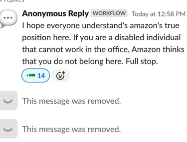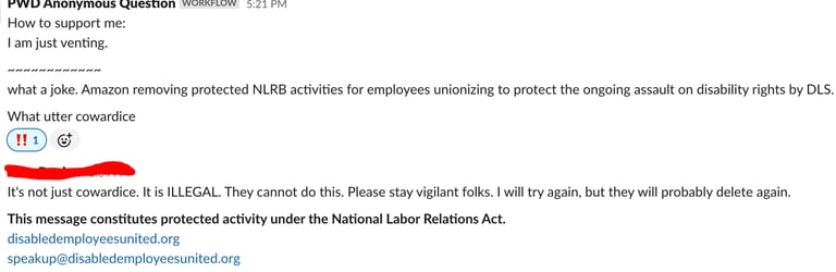 NLRB and ADA Retaliatory Messages and removals from Amazon