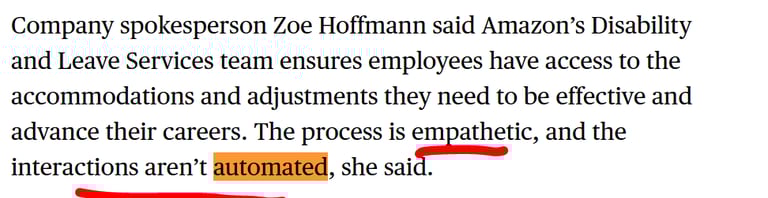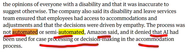 Proof Amazon uses Ai in Accommodations process (Is provided below) which contradicts their public statements. The PDF