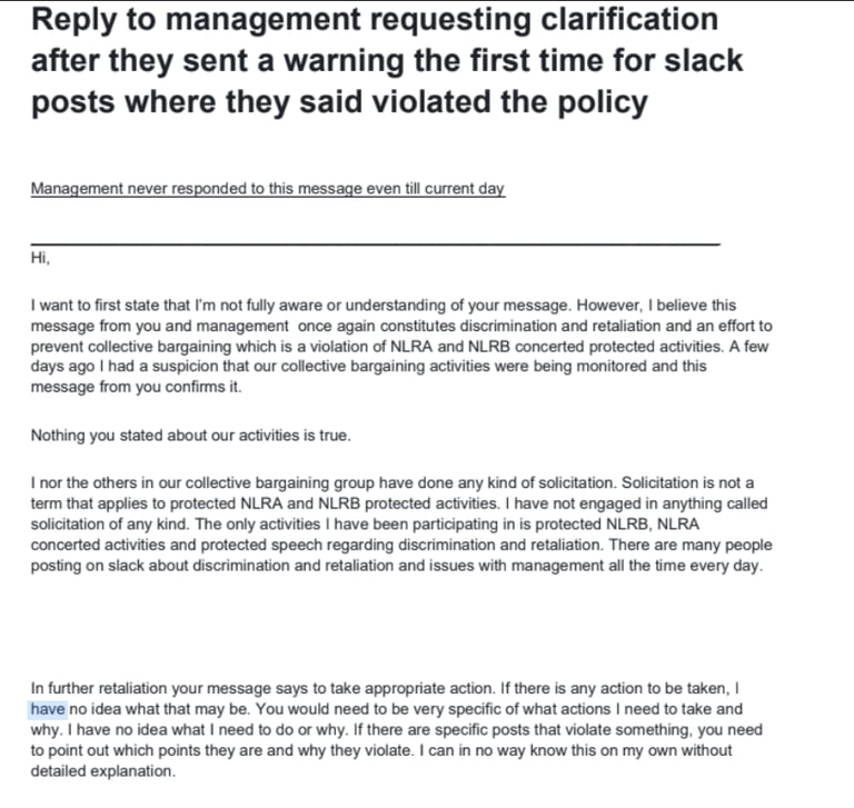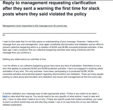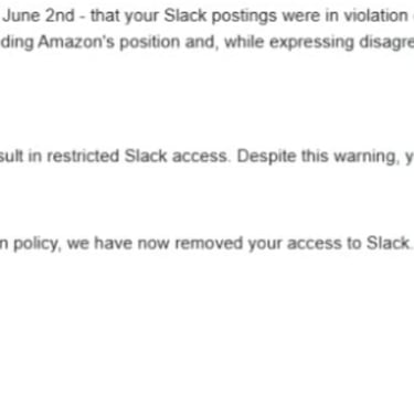Again another message saying they removed posts without explaining which posts or why and threatening to remove slack access